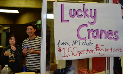 API (Asian Pacific & Islander) Club used their fundraising week at school from February 3-7 to sell chains of origami cranes. Each chain, consisting of six cranes, were priced at $1.50 each and a discounted price of $5.00 was offered for a total of four chains.
