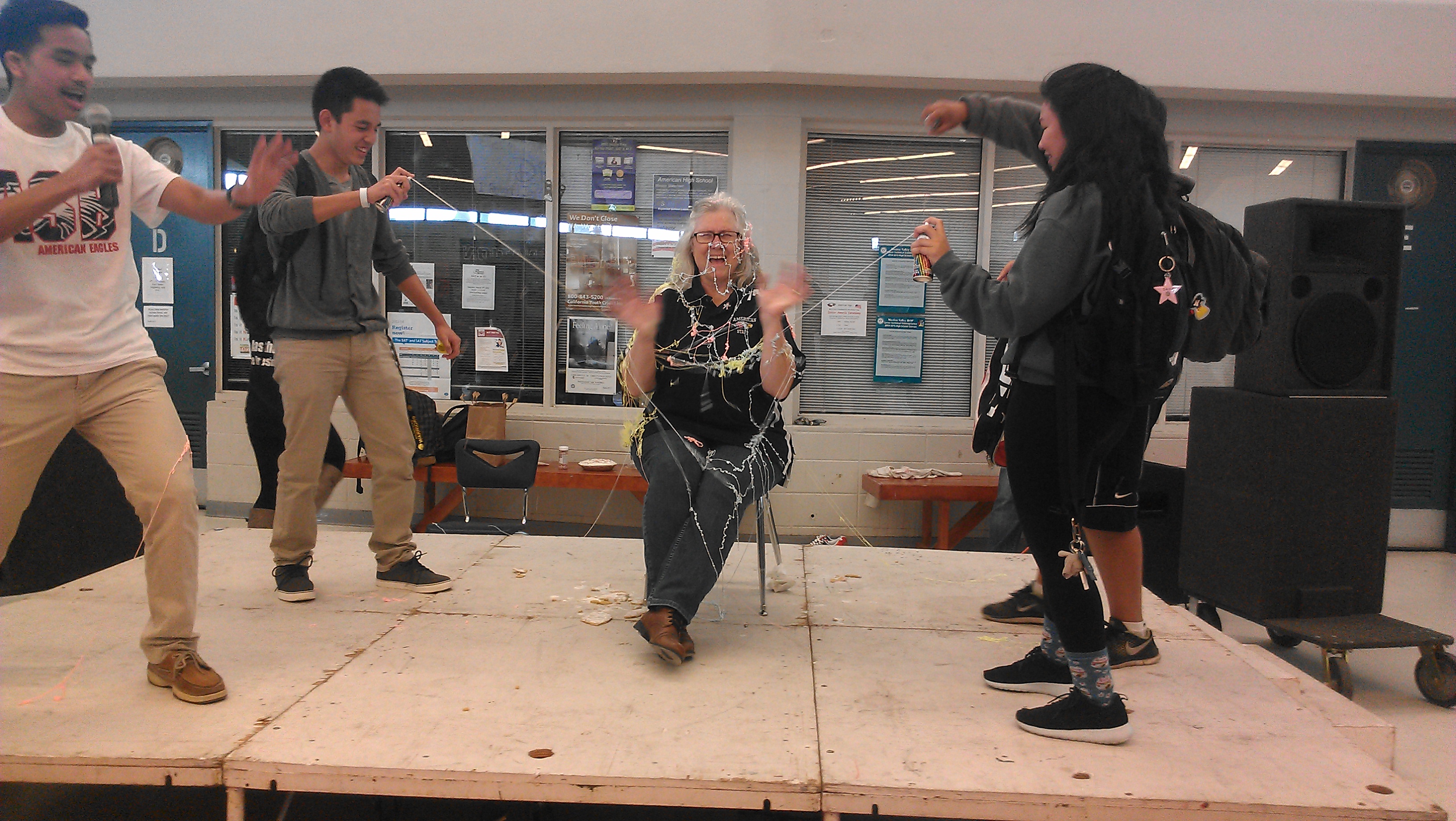 As part of the “contest,” Cooper was also silly-stringed by three students of her choice.