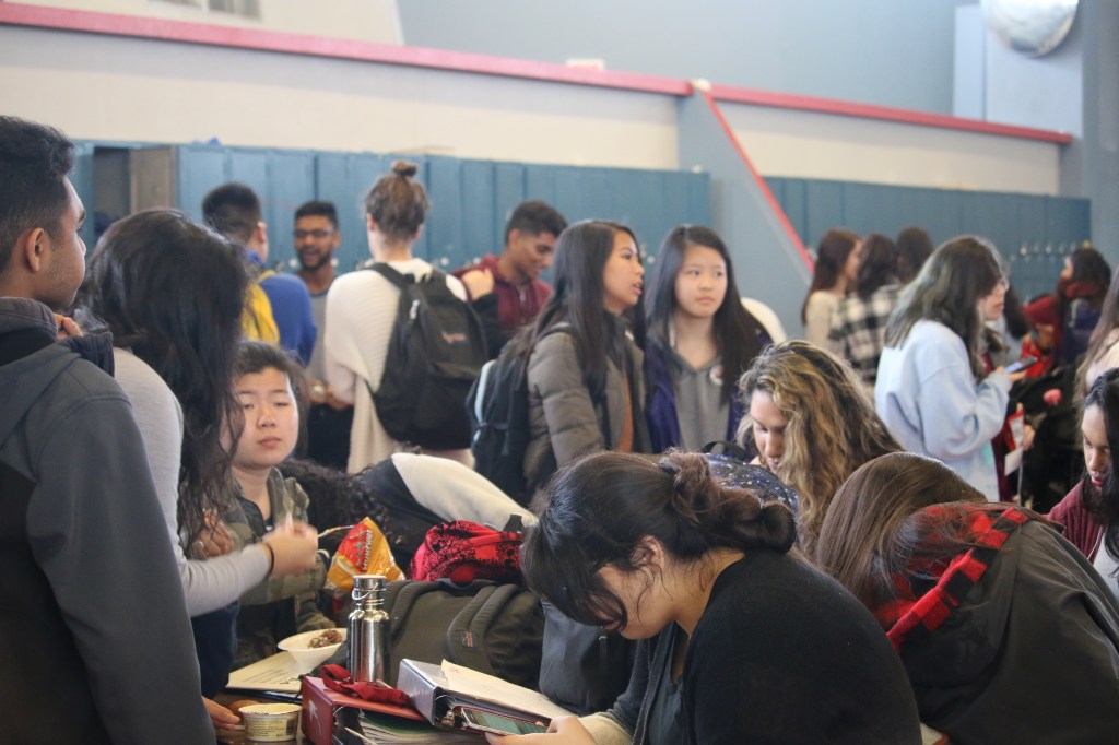 Senior Wall received its name from the large wall of lockers behind it. Most seniors’ lockers are located here because when students are assigned their lockers for the year, the wall of lockers is specifically reserved for seniors.