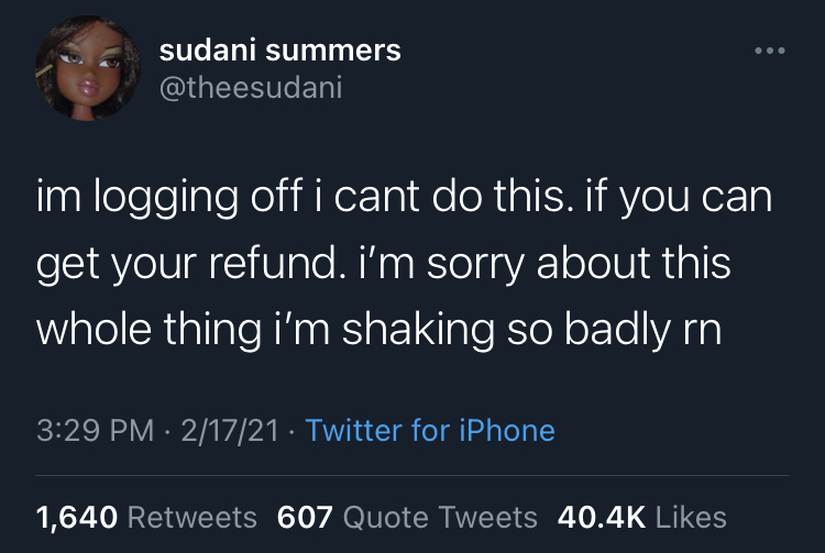 In early February 2021, Sai, a Black, transfemme, person went missing. They told their friends that they were visiting Ohio from Los Angeles, and then they seemed to have disappeared during the trip. They also said that they were being followed by a Latino man, so people would have an idea of who to look for. Their friends spammed Twitter with the hashtag #findsai in the hopes that it would get enough traction for police to get involved or someone would’ve seen them in Ohio and been able to get them home safely. At this same time, people were spreading their GoFundMe so they would be able to afford to live once they were found, and many people were in distress as Sai was missing for a couple days.