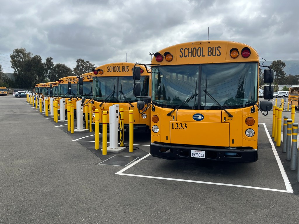 FUSD’s new electric buses charge at their stations. “Half of the students who ride the bus in our district ride on an electric bus,” said Ivy. “Our electric buses travel about 45,000 all-electric miles per year” (Photo Credit: Ernest Epley).
